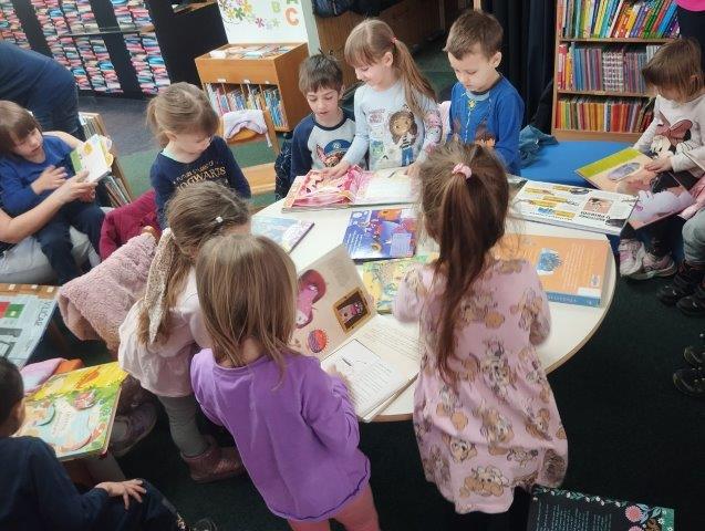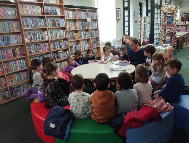 U četvrtak smo posjetili Knjižnicu I čitaonicu Kutina gdje su djeca imala priliku poslušati priču. Nakon priče djeca su opisivala koje slikovnice najradije slušaju. Na kraju uz dogovor s djecom posudili smo slikovnice za čitanje prije dnevnog odmora.