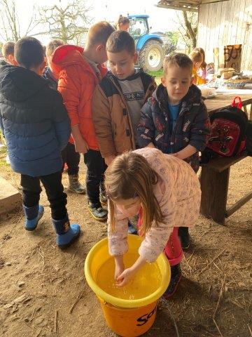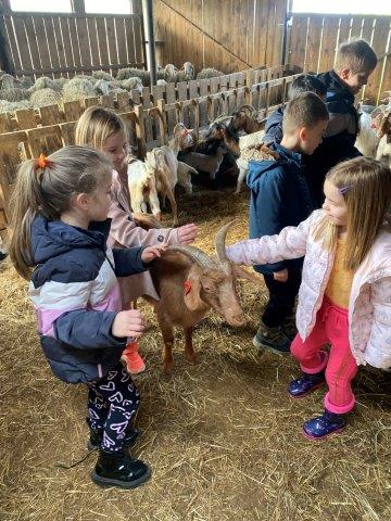 Tijekom izleta hranili smo koze, ovce, zečeve, vidjeli magarce, svinje s praščićima, farmu krava i tek izlegle piliće. Djeca su istraživala kako nastaje mlijeko, čemu služi izmuzište i kako ljudi brinu o životinjama. Uz to kušali smo kolače od bučinog brašna, bučine koštice i čaj od mente i kamilice, čime smo se upoznali s prirodnim i zdravim namirnicama.