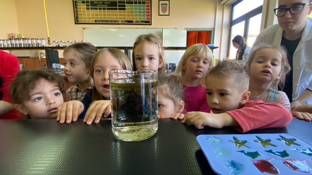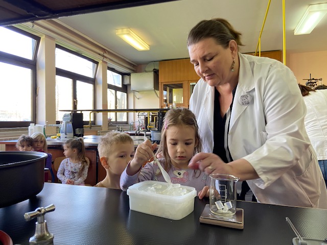 U suradnji s gđom. Škreblin, djeca srednje B skupine objekta Maslačak posjetili su Tehničku školu. Djecu su upoznali sa prostorom laboratorija u kojem su za njih pripremili eksperimente te su djeca sudjelovala u izradi sapunčića. Neke eksperimente smo proveli u našoj skupini.