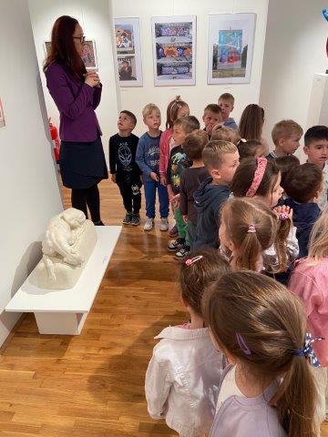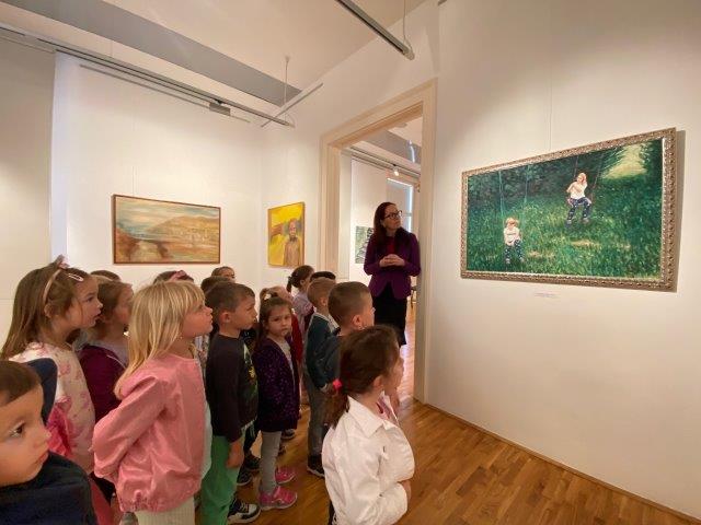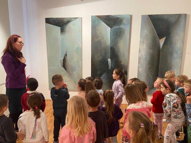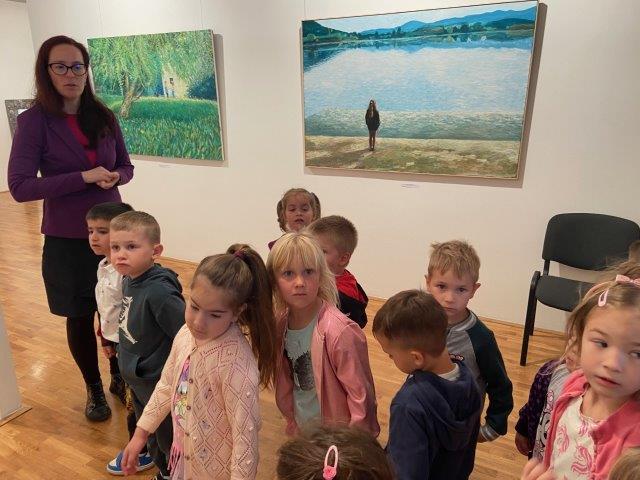 U Galeriji Muzeja Moslavine postavljena je izložba 7. likovni trijenale Moslavine. Djeca srednje B skupine Maslačka posjetila su izložbu pod stručnim vodstvom kustosice Jelene Batinić. Uz slike naših moslavačkih slikara vidjeli su i skulpture.