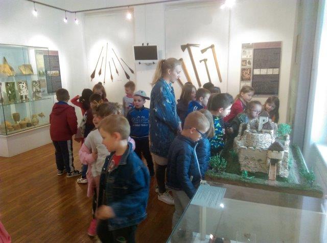 Djeca starije B i starije C skupine Maslačka posjetila su postav stalnih zbirki u muzeju: etnografsku, arheološku i kulturno-povijesnu. Djeci je najzanimljiviji bio Kameni portal Pavlinskog samostana iz 13 st.zvan još i Bela crkva kojeg su preselili s Moslavačke gore u Muzej Moslavine. Iz etnografske zbirke tradicijskog gospodarstva djecu su zanimali strojevi i naprave za obradu žita, iz kulturno-povijesne zbirke fotoaparati, oružje i makete Garić grada i trijema.