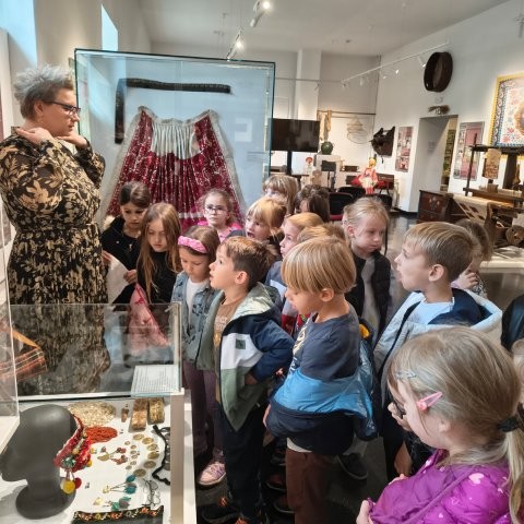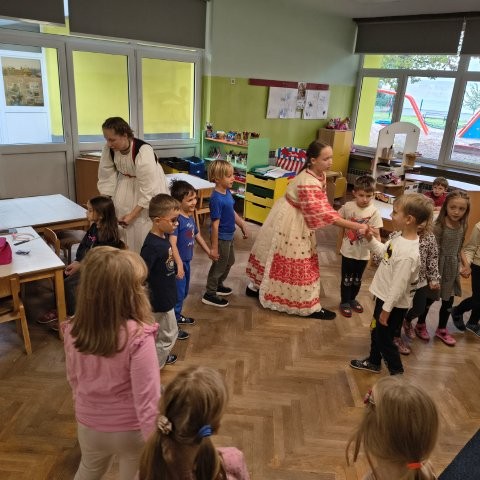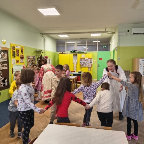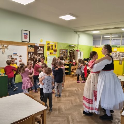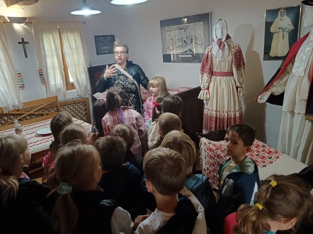 Djeca starije C skupine Maslačka ove godine provode aktivnosti vezane uz upoznavanje kulturne baštine našeg kraja. Kako bismo djeci što bolje približili kulturnu baštinu Moslavine, ugostili smo Ritinu tetu, gospođu Ružicu Plantosar, koja nam je pokazala kako izgleda narodna nošnja Moslavine i naučila nas nekoliko starih igara kao i ples “Moslavački drmeš”. Zatim smo posjetili Muzej Moslavine, gdje smo vidjeli razne stare predmete. Nakon toga otišli smo do trijema u Crkvenoj ulici i razgledavali unutrašnjost, gdje su djeca mogla vidjeti stari namještaj i predmete koji se danas više ne koriste.