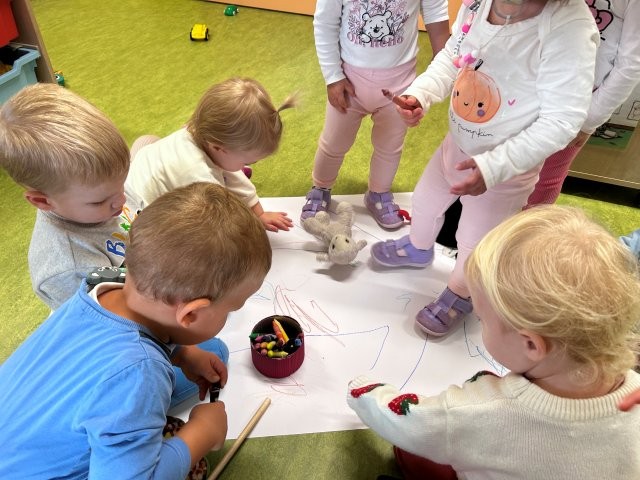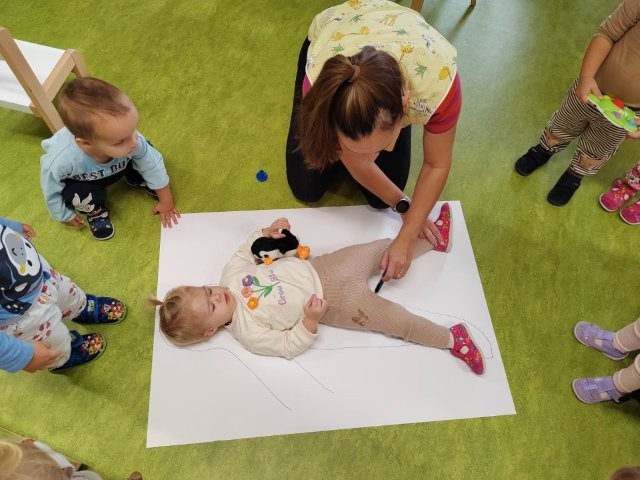 U ovom tjednu tema naših aktivnosti je bila “To sam ja”. Najveći interes djece izazvalo je ocrtavanje lika djeteta na hamer papiru i bojanje pastelama. Većina djece je sudjelovala u aktivnosti i bila ustrajna u bojanju.