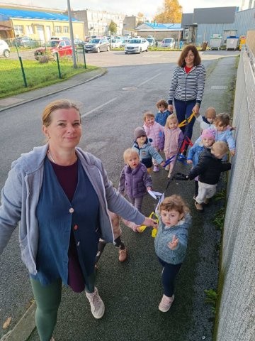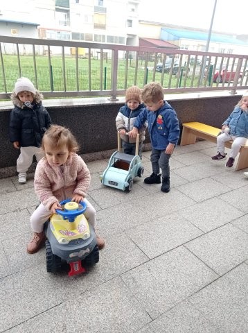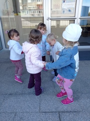 Djeca trećih jaslica Zvončića svakodnevno borave na zraku. Plešu uz glazbu,spuštaju se niz tobogan, koriste guralice i vozila. Prošli tjedan smo krenuli i u prve šetnje stazom uz zgradu te nam u tome uvelike služi konopac za formiranje parova i kolone.