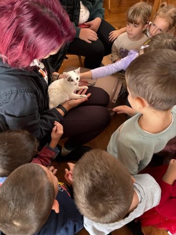 U utorak, 4. studenoga, našu skupinu su posjetili volonteri "Fauna". Djeca su imala priliku biti u blizini mačke, promatrati njezino ponašanje i nježno je maziti. Aktivnost je bila vrlo zanimljiva i poučna te je djecu potaknula na kontakt s životinjama i razvijanje empatije prema njima.