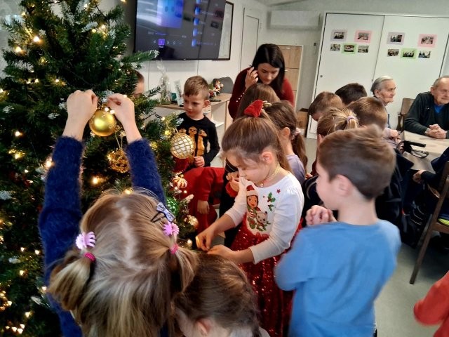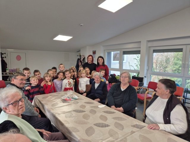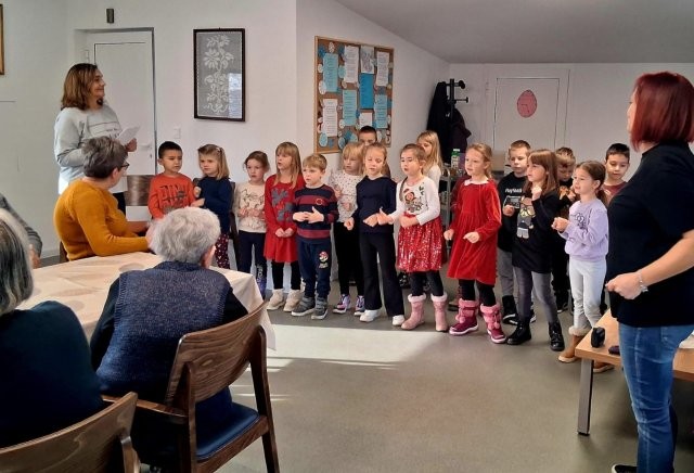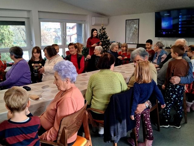Povodom Dana starijih osoba Sisačko-moslavačke županije, djeca starije B skupine posjetila su Dom za starije osobe Sisak – dislociranu jedinicu u Kutini. Djeca su izvela kratki prigodni program kojim su starijima uljepšala početak adventa i unijela mnogo radosti i smijeha. Nakon programa preuzeli smo zadatak kićenja božićnog bora – djeca su s velikim uzbuđenjem i ponosom ukrašavala bor umjesto korisnika doma, koji su ih pritom s veseljem promatrali, razgovarali s njima i bodrili ih. Domaćini su djecu srdačno počastili sokom i slatkišima, što je dodatno uljepšalo naše druženje. Susret je bio ispunjen toplinom, lijepim emocijama i pravim međugeneracijskim povezivanjem, koje djecu uči empatiji, poštovanju i važnosti pomaganja drugima.