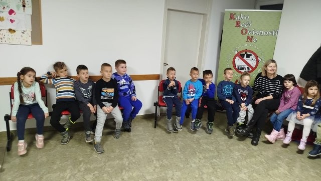 Djeca starije D skupine Maslačka sudjelovala su na edukativnom predavanju o ovisnostima koje je održano u prostorijama Hrvatskog zavoda za javno zdravstvo u Kutini. Cilj predavanja bio je upoznati djecu s temeljnim informacijama o zdravim navikama, rizicima vezanima uz ovisnosti te važnosti brige o vlastitom tijelu. Dr. Marija Starčević i stručnjaci na djeci primjeren način objasnili su što sve može dovesti do ovisnosti, kako prepoznati rizična ponašanja te kome se mogu obratiti ako im je potrebna podrška ili savjet. Kroz razgovor i primjere iz svakodnevnog života, djeca su potaknuta na razmišljanje o odgovornom ponašanju i donošenju zdravih navika za sebe, svoje roditelje i bližnje. Predavanje je proteklo u ugodnoj atmosferi, a djeca su pokazala veliki interes i aktivno sudjelovala postavljajući pitanja i dijeleći vlastita razmišljanja.