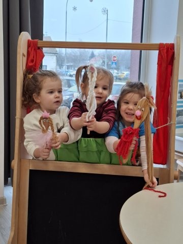 U praktičnom dijelu radionice izrađivali su lutke od raznih materijala: čarapa, tkanine, filca, papira, dugmadi i vune. Roditelji su s velikim interesom sudjelovali u izradi te pokazali maštovitost i entuzijazam. Djeca su sljedećih dana počela ostvarivati igru i istraživati lutke te otkrivati na koji način se njima manipulira. Najveći interes izrazila su za igru zjevalicama i štapnim lutkama. Počela su ostvarivati kratke međusobne dijaloge, osmišljavati radnje priča, organizirati prostor i pri tom se govorno izražavati.