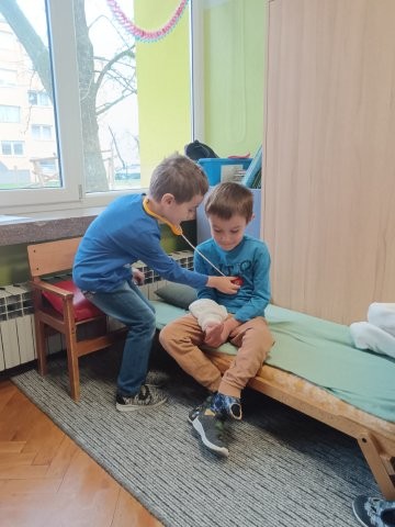 Djeca starije C skupine Maslačka kroz igru su istraživala svijet zdravlja i brige o drugima. Preuzimala su uloge liječnika, pacijenata, medicinske sestre, pregledavala bolesnike, slušala srce, mjerila temperaturu te razgovarala o zdravlju. Igra je poticala razvoj mašte, suradnje, empatije i međusobne komunikacije.