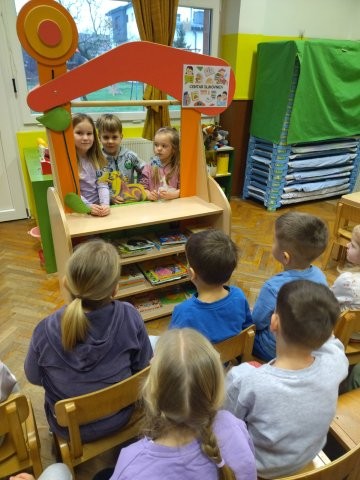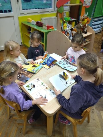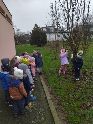 Tijekom proteklog tjedna djeca srednje A skupine Nevena, kroz razne slikovnice i dječje enciklopedije upoznavala su ptice, njihove vrste, otkrivala kakve mogu biti boje i veličine, od čega se sastoji njihovo tijelo, što ptice jedu i još mnoge druge zanimljivosti. Nakon čitanja slikovnice Razbojnik sa žutom pjegom djeca su manipulirala štapnim lutkama, proigravala priču i likovno se izražavala. Uz aplikacije priče u nizu pričala su priču o vrapčiću koji gradu kućicu, pjevala su pjesmicu o vrapčiću uz izvođenje pokreta, izrađivala kućicu za ptičice od velike kartonske kutije, a od plastičnih boca hranilice koje su punila sjemenkama. Hranilice smo zajedno postavili na vrtićkom igralištu i tako pomogli ptičicama u potrazi za hranom.