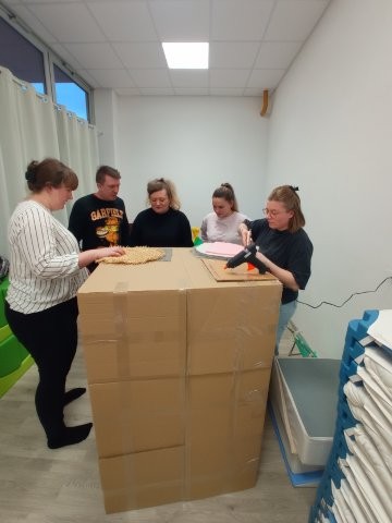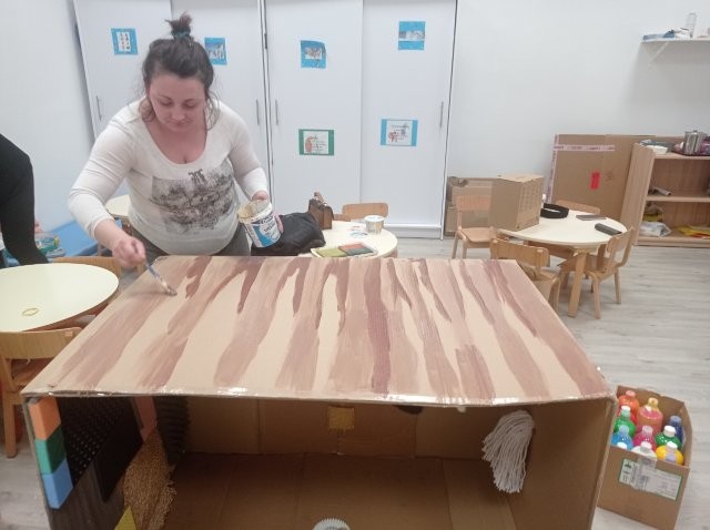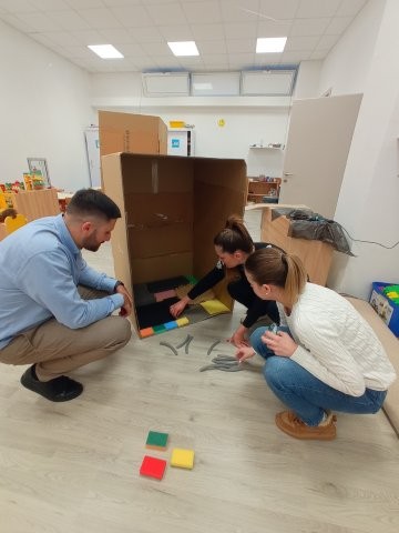 U skupini III. jaslica Zvončića održana je radionica izrade senzomotoričkih kućica. Radionici je prisustvovao veći broj roditelja iz skupine. Ideja ove radionice počiva na promatranju igre, potreba i interesa djece u prostoru skupine. Igra i istraživanje senzomotoričkih kućica ima za cilj razvijanje dječjih osjetila, ravnoteže, fine i grube motorike, koordinacije, socijalnih, kognitivnih i jezičnih vještina. Osim senzornih poticaja kućice su i oslikane jednom stranom kao scenska pozadina za izvođenje scenske igre na temu priče Vuk i tri praščića.