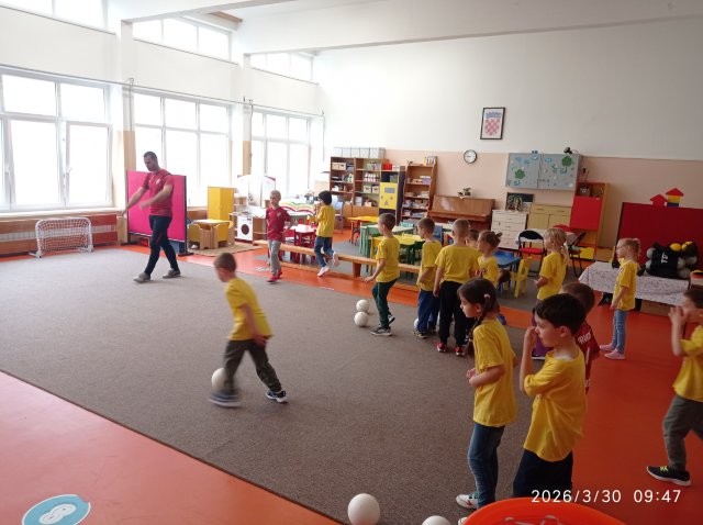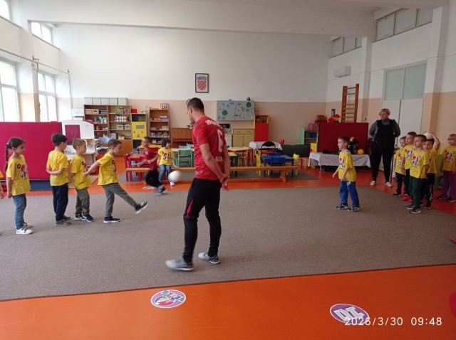 Djeca starije D skupine Maslačka provela su u dvorani tjelesne aktivnosti s Teovim ocem, g. Stjepanom Hraniteljem i bratom Gabrielom. Tata nogometaš djecu je proveo kroz niz zanimljivih igara i vježbi spretnosti, razvijajući koordinaciju pokreta i vještine baratanja s loptom. Djeca su se rado uključila u sve aktivnosti.
