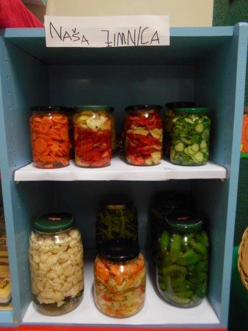 Tijekom mjeseca rujna razgovarajući o raznim jesenskim aktivnostima jedna djevojčica ispričala je kako je radila zimnicu sa svojom bakom. Djeca su bila zainteresirana za proces nastanka zimnice. U suradnji s roditeljima prikupili smo razno povrće potrebno za zimnicu. Tijekom postupka spremanja zimnice djeca su saznala što je sve potrebno za to i na koje načine možemo pripremiti povrće. Zajedničkim radom djece i odgojitelja nastala je naša zimnica koju s veseljem iščekujemo kušati.