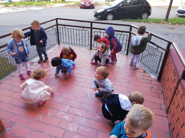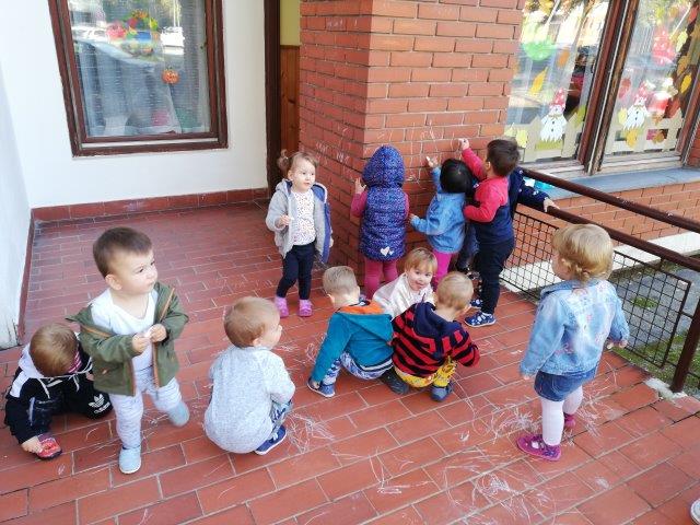 Boravak na zraku 30.9.2019. Boravak na zraku dio je svakodnevnih aktivnosti koje provodimo u našoj skupini. Igrajući se na otvorenom djeca razvijaju vještine na svim područjima i zadovoljavaju potrebu za kretanjem. Jedna od omiljenih aktivnosti u našoj skupini je šaranje kredom. Djeca pokazuju veliko zanimanje za tragove koje ostavljaju pokretom ruke. Silvija Rakić i Natalija Sinkić, odgojiteljice II A jaslica Bubamare