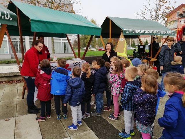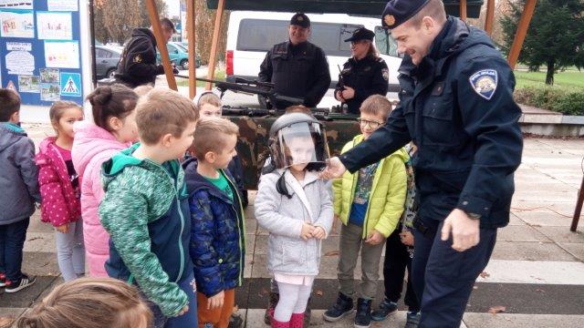 Djeca starijih i srednjih skupina obišla su štandove na kojima su policijski službenici djecu upoznali s opasnostima od vatrenog oružja te minsko eksplozivnih sredstava kako bi se podigla razina opće sigurnosti te sigurnosti u prometu, štand Crvenog križa, Javne vatrogasne postrojbe, HGSS-a.