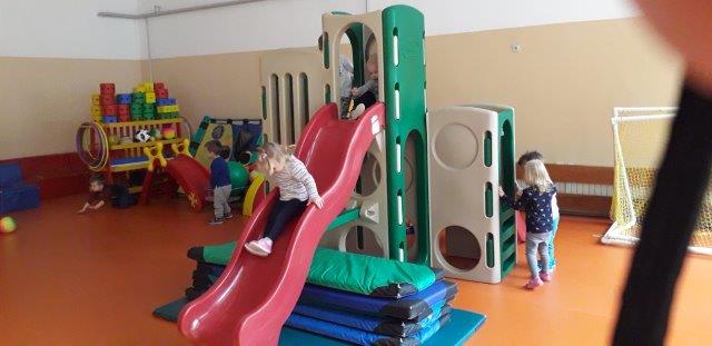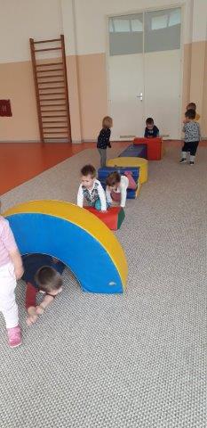 Posebno ih veseli odlazak u dvoranu gdje ih veliki prostor i puno šarenih sprava potiče na istraživanje i kretanje. Djeca pokazuju najveći interes za trčanje, puzanje i povlačenje kroz poligon od wesco elemenata, spuštanje niz tobogan, igru loptama i balonima, vožnju triciklima, hodanje po neravnoj površini.