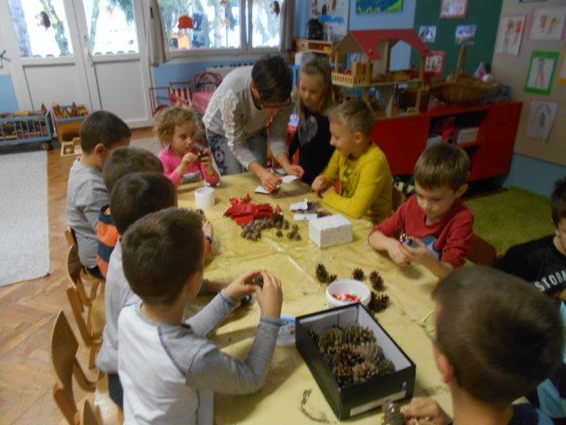 Tijekom proteklih tjedana započeli smo pripremu za blagdan Božić koja nam se bliži. U suradnji s majkama Duvandžija i Labus izradili smo razne ukrase kojima smo okitili bor u hodniku našeg objekta te sobu dnevnog boravka. Zajedno s majkom Ljevar izradili smo vijenac za vrata i adventski vijenac na kojem redovito palimo svijeće te razgovaramo o Božiću, radosti i veselju koje nam on donosi. Zahvaljujemo majkama na uloženom trudu u pripremi aktivnosti i materijala te na ugodnoj i kreativnoj suradnji.