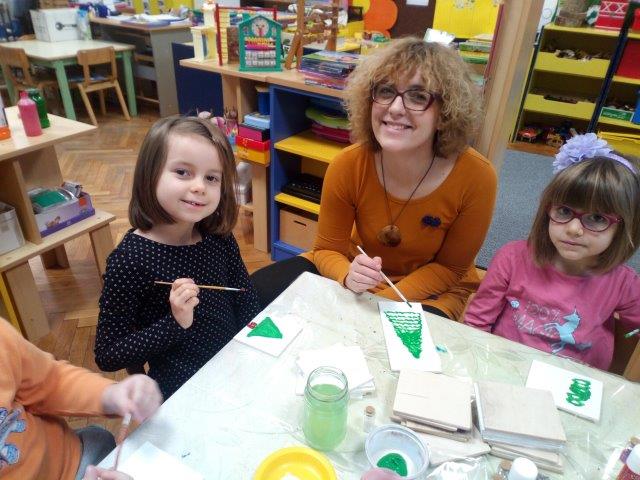 U starijoj C skupini objekta Maslačka boravila je gđa Herjavec, Lunina mama. Za aktivnost pod nazivom "Božićna čarolija" pripremila je drvene podloge i mnogo božićnih ukrasa. Djeca su oslikavala podlogu božićnim motivima i ukrasila ukrasima.