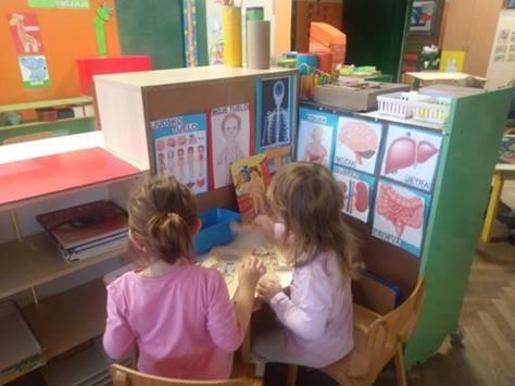 U istraživalačkom centru, kroz različite materijale i aktivnosti djeca su proširivala svoje spoznaje o vlastitom tijelu; dijelove tijela, unutarnje organe i njihove funkcije te vanjske dijelove tijela.