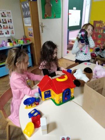Prostor srednje „A“ skupine obogaćen je novim igračkama. Djeca u skupini s veseljem su krenula u istraživanje novih poticaja za igru. Najveće zanimanje dječaka u skupini usmjereno je na plastični konstruktor koji pruža brojne mogućnosti kombiniranja, konstruiranja, sastavljanja. Djevojčice su svoj interes usmjerile na Tolo kućicu koja im je poticaj na igre pretvaranja.