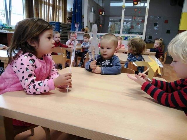Djeca rado slušaju priče. Okupljaju se i slušaju čitanje odgojiteljice. Priče prepričavamo složene u slikopriče. U scenskom kutiću nalaze se štapne lutke i lutke rukavice. Razni likovi potiču djecu na korištenje lutki uz koje pričaju svoje priče jedni drugima. Štapne lutke oživljavaju uz brojanje brojalica i pjevanje pjesmica, a djeca rado koriste zvečke i šuškalice.