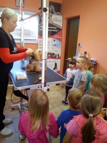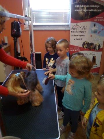 Uz prethodni dogovor s vlasnicom „Royal pet“ salona realiziran je posjet gdje su se djeca uz neposredni kontakt sa psom okušala u češljanju njegove dlake. Kao što je psić bio vrlo strpljiv, tako su ga i djeca s posebnom pažnjom i nježnošću češljala. Teta Anita pokazala je gdje se ljubimci kupaju, kako ih šiša i i uređuje.